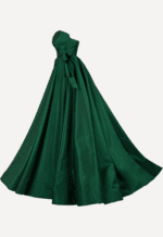 This Fouad Sarkis Gown is a striking ode to timeless couture elegance. Crafted in a rich emerald green satin with a luminous sheen, this masterpiece commands attention with its sculptural silhouette and regal presence.