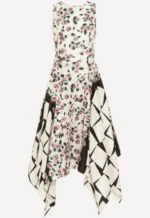 This Suno midi dress effortlessly captures attention with its unique design and vibrant details. The floral cube print showcases a fusion of contemporary geometric shapes and delicate floral patterns.