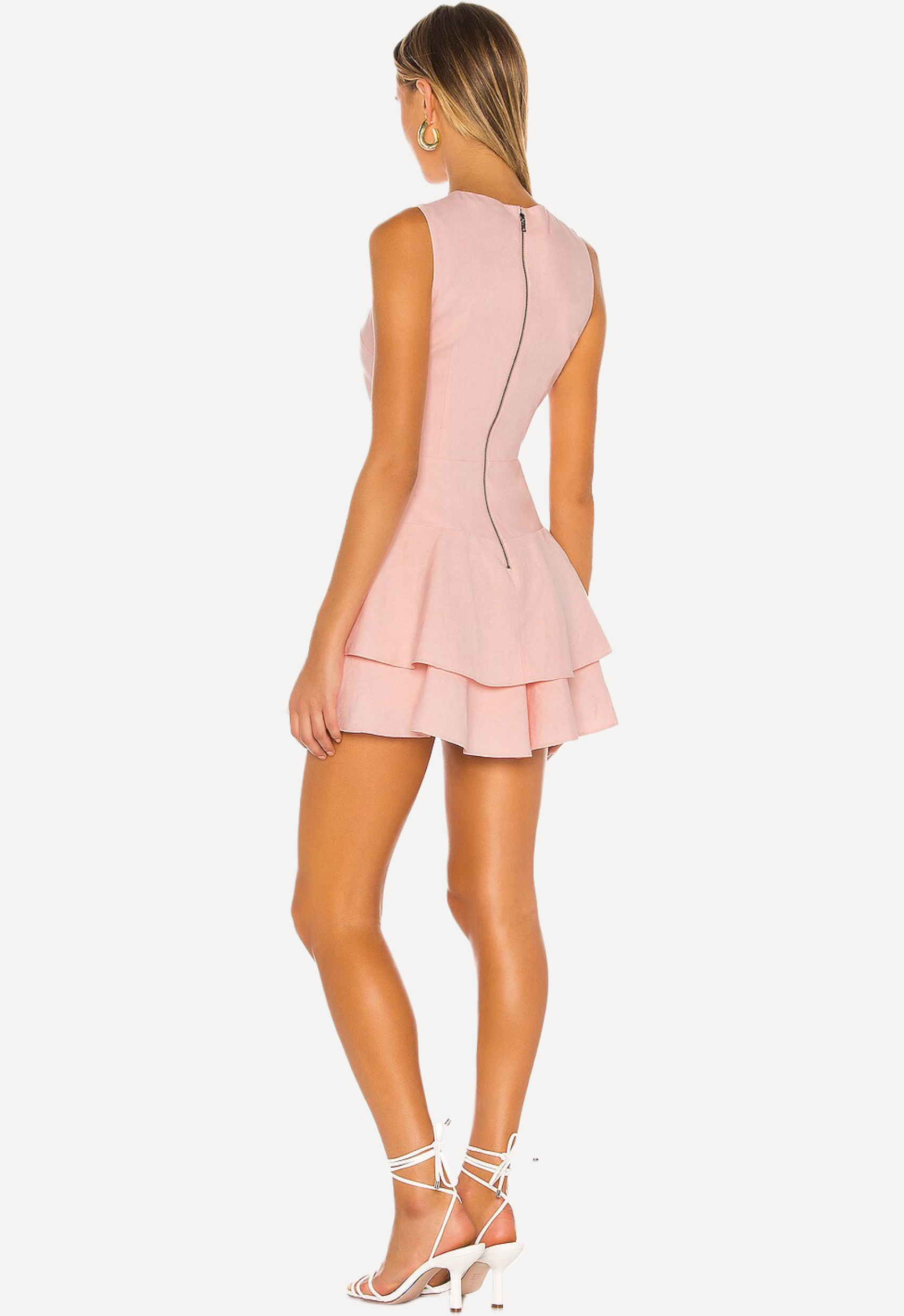 The Palmira Ruffle Mini Dress by Alice + Olivia is crafted in a romantic blush pink hue, this chic mini dress features a sleeveless silhouette that highlights the shoulders and a cascade of delicate ruffles for a playful yet polished touch. The fitted bodice flatters the figure, while the tiered ruffle skirt adds graceful movement and texture. Perfect for garden parties, brunches, or special occasions, this dress embodies modern elegance with a flirty twist.