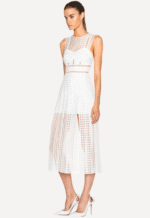 The Pleated Check Midi Dress by Self-portrait is fully lined, includes a checkered pattern, pleated fabric detailing, a side slit and a hidden back zip closure.