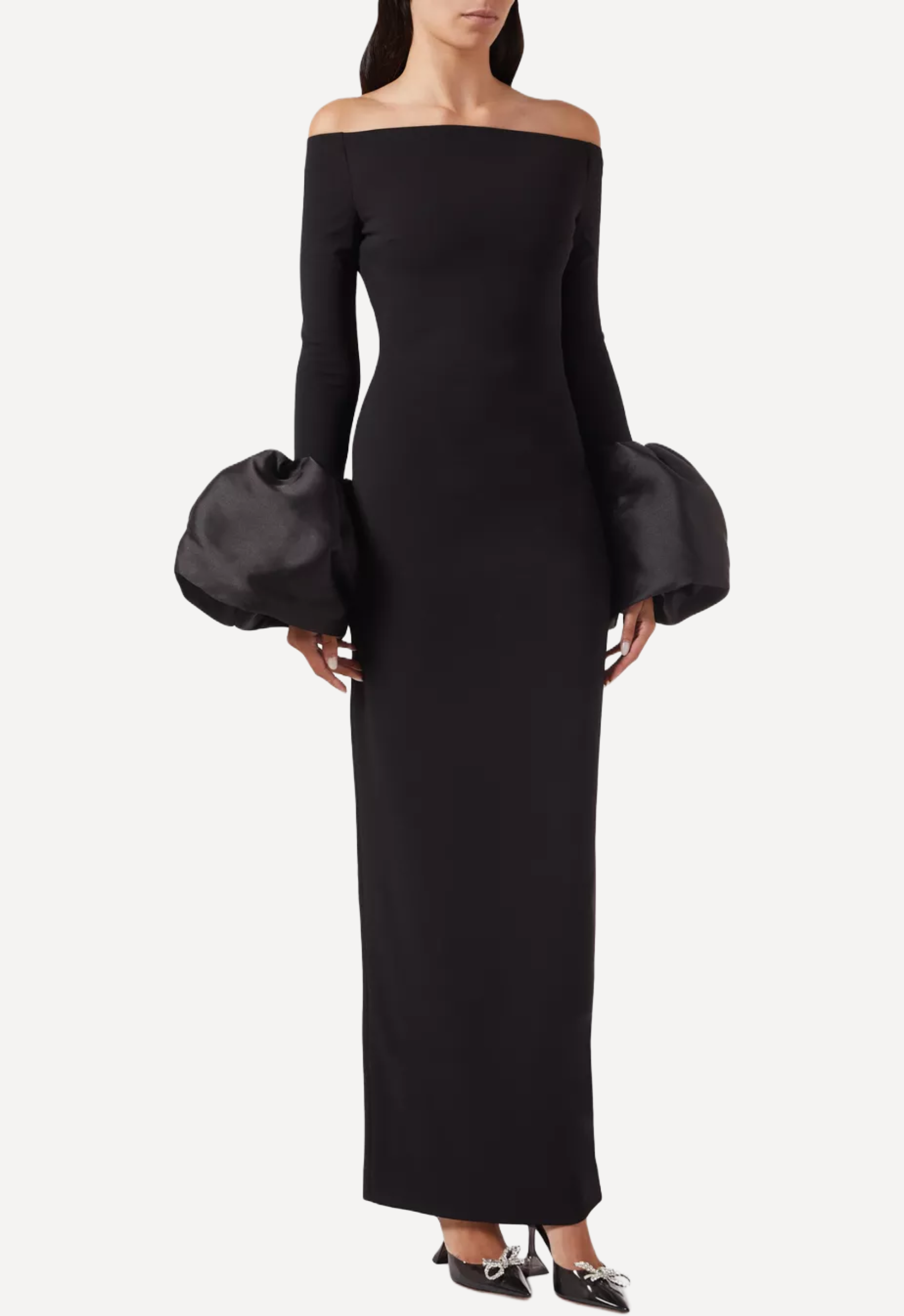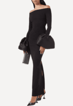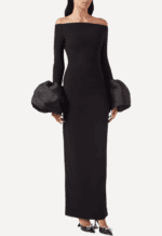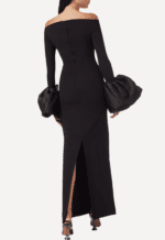 Solace London’s Talia Maxi Dress is a study in refined drama, where expert tailoring takes center stage over overt embellishment. Designed to contour and flatter the figure, the sleek silhouette skims the body before falling into a floor-length hem, while a subtle rear slit ensures effortless movement and a confident stride. Voluminous puff cuffs add a sculptural edge, transforming the minimalist design into a statement that feels both modern and runway inspired.